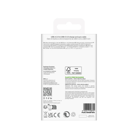 Puro TPE 10W USB-A - USB-C Kabel 3m - Hvid