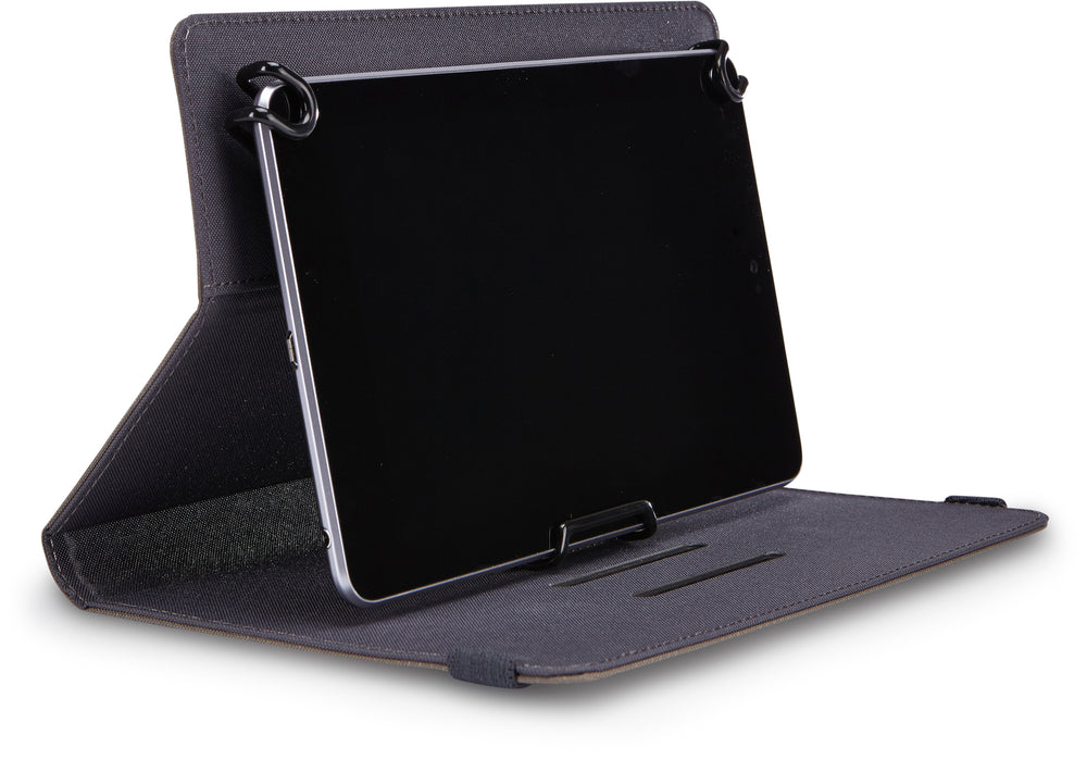 Tilpasselig booklet-stil folio justerer til præcist at passe til en variation af 9"- 10" tablets.