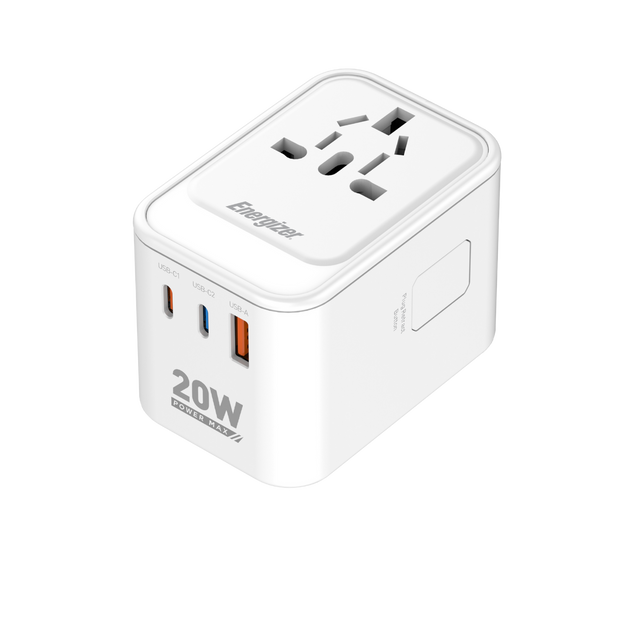 Energizer 20W dobbelt USB-C og USB-A rejseoplader .