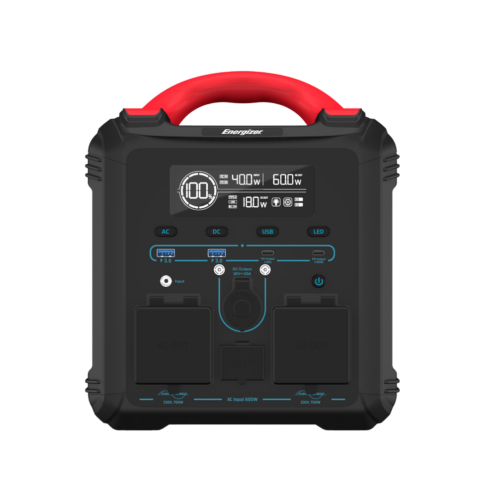 Energizer 700W bærbar kraftstation med dobbelt PD-udgang. Sort .