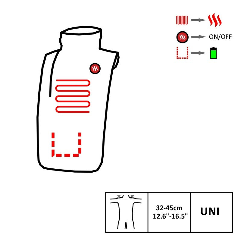 Varmeelementet er konstrueret af kulfibre, der tilbyder ekstraordinær pålidelighed og holdbarhed samt medicinske egenskaber takket være infrarøde bølgerEn lomme til opbevaring af batteriet giver dig komfort hver dag