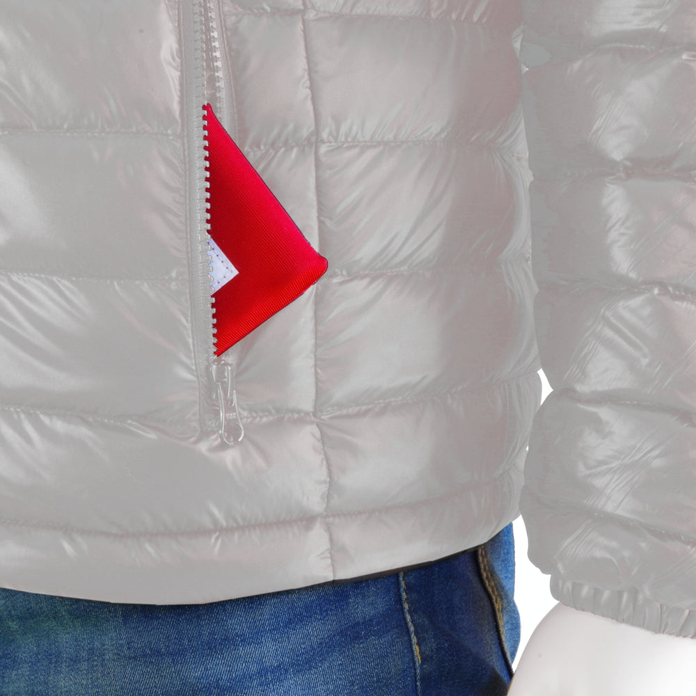 Jakke er lavet af regntæt nylon, isoleret med syntetisk fjer.