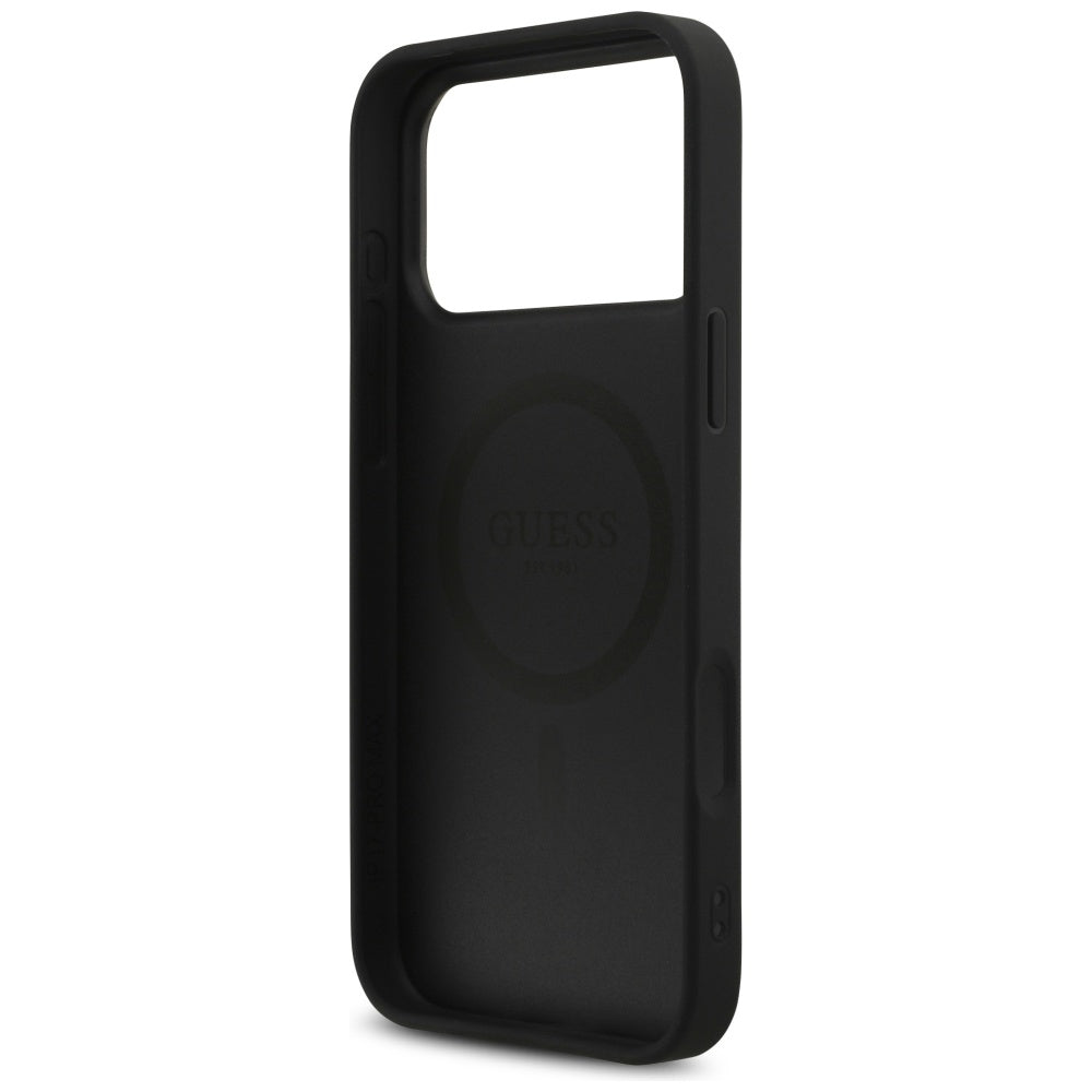 Guess Leather 4G Triangle Strass MagSafe Case for iPhone 17 Pro Max - Black .