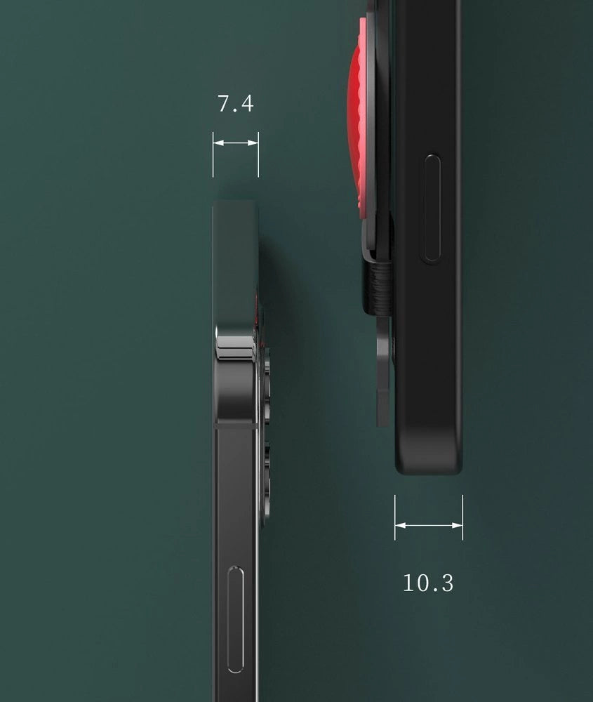 After putting it on the phone, it only slightly thickens it - together with the case, the device is 10.3 cm wide. Perfectly cut openings for the camera lens and for operating the side buttons guarantee easy control of the equipment without removing the housing.