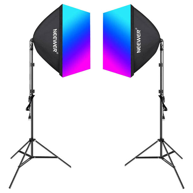 Kit Neewer NK800 to softboxes + pærer RGB 24W 2700-6500K + stativ + barndoors