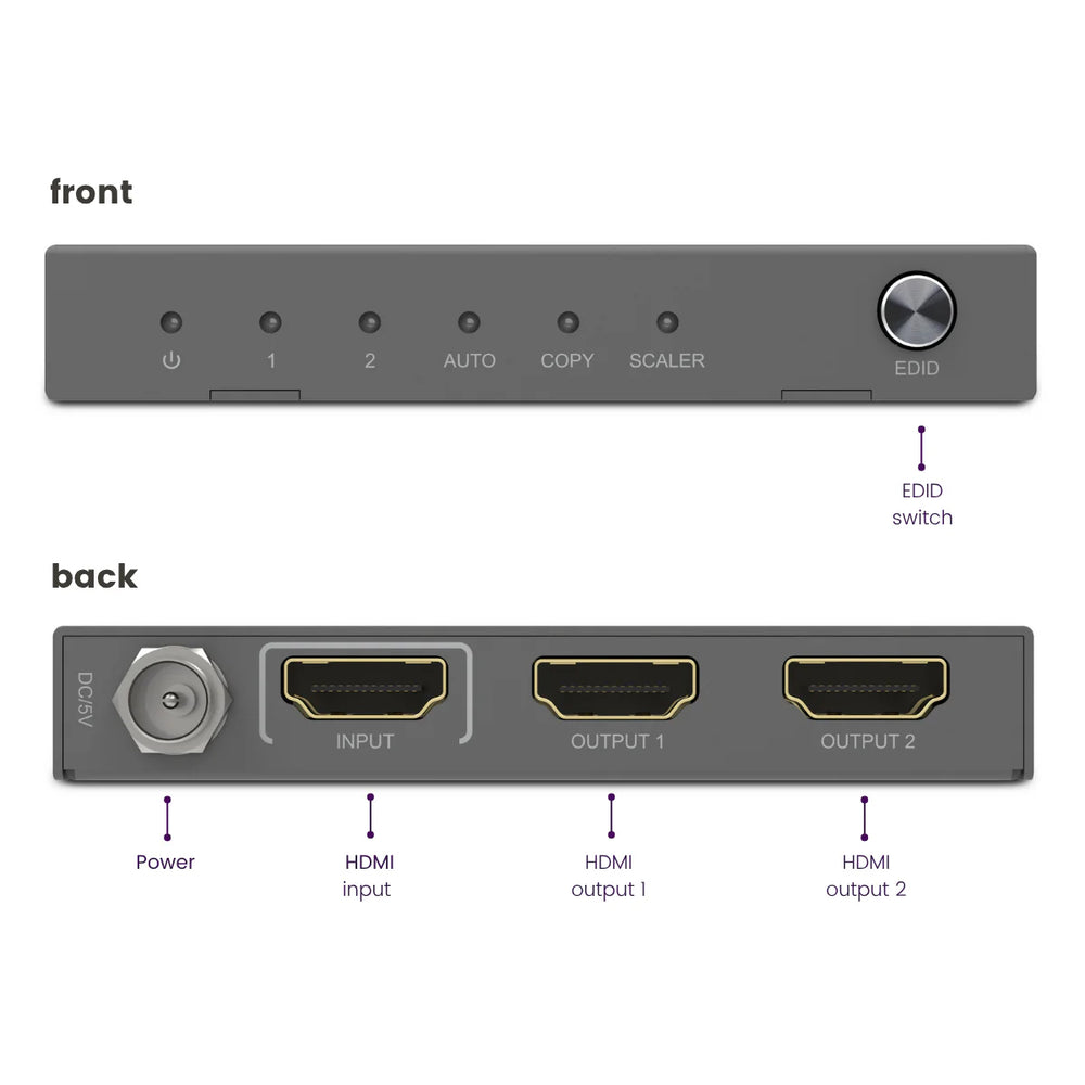 Del et HDMI-signal til 2 tv'erUnderstøtter Ultra HD 4K60, HDR, Deep Color, 4:4:4 Chroma Colors (18 Gbps)