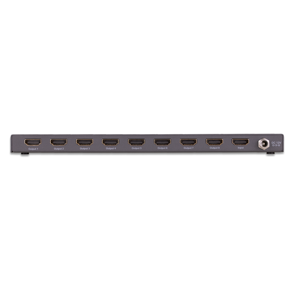 HDR står for High Dynamic Range. HDR giver billeder med stærkt forbedret lysstyrke og højere kontrast (lysere hvid og dybere sort). Kombineret med et større farveområde skaber dette et mere realistisk og naturligt billede. For at kunne nyde HDR skal dit TV understøtte HDR funktionen. Materiale, der vises i HDR kvalitet (f.eks. 4K Blu-ray, Netflix og YouTube), kan derefter nemt afspilles på dit TV. HDR tilføjer ikke flere pixels, som 4K Ultra HD gør, men forbedrer de pixels, der er. Opdel dit HDMI™ signal til 8 TV'er eller projektorer.