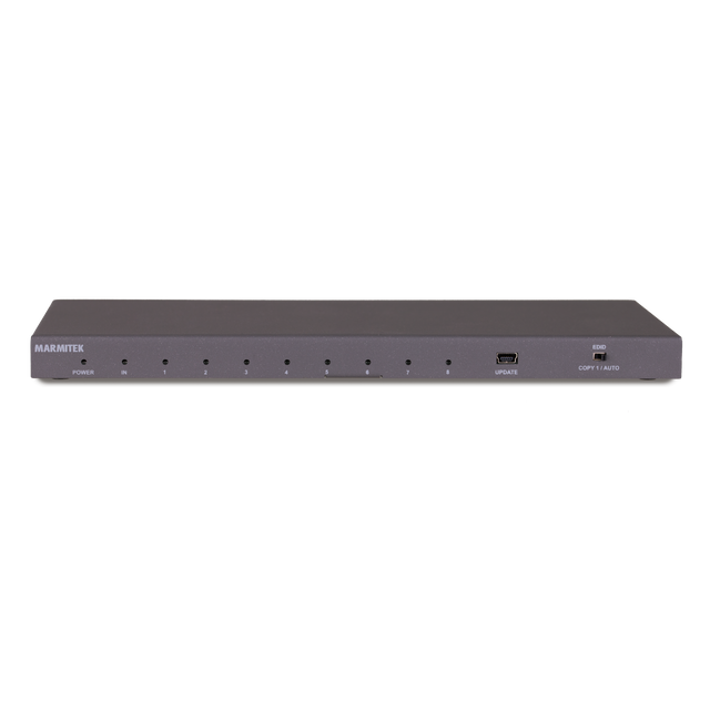 Del dit HDMI™ signal og afspil det over 8 TV'er/projektorer. Split 618 UHD 2.0 giver dig mulighed for at opdele HDMI™ signalet fra din dekoder eller en anden HDMI™ kilde til 8 TV'er. Ideel, når du vil vise den samme præsentation eller film på 8 skærme på samme tid. UHD 2.0 serien er velegnet til tilslutninger med det nyeste Ultra HDudstyr, forudsat at disse er udstyret med både HDMI™ 2.0 og HDCP 2.2 sikkerhed.