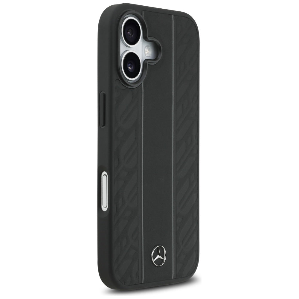 The back is decorated with a distinctive tire pattern and a metal Mercedes-Benz logo , which emphasize the elegant and sporty character of the case.