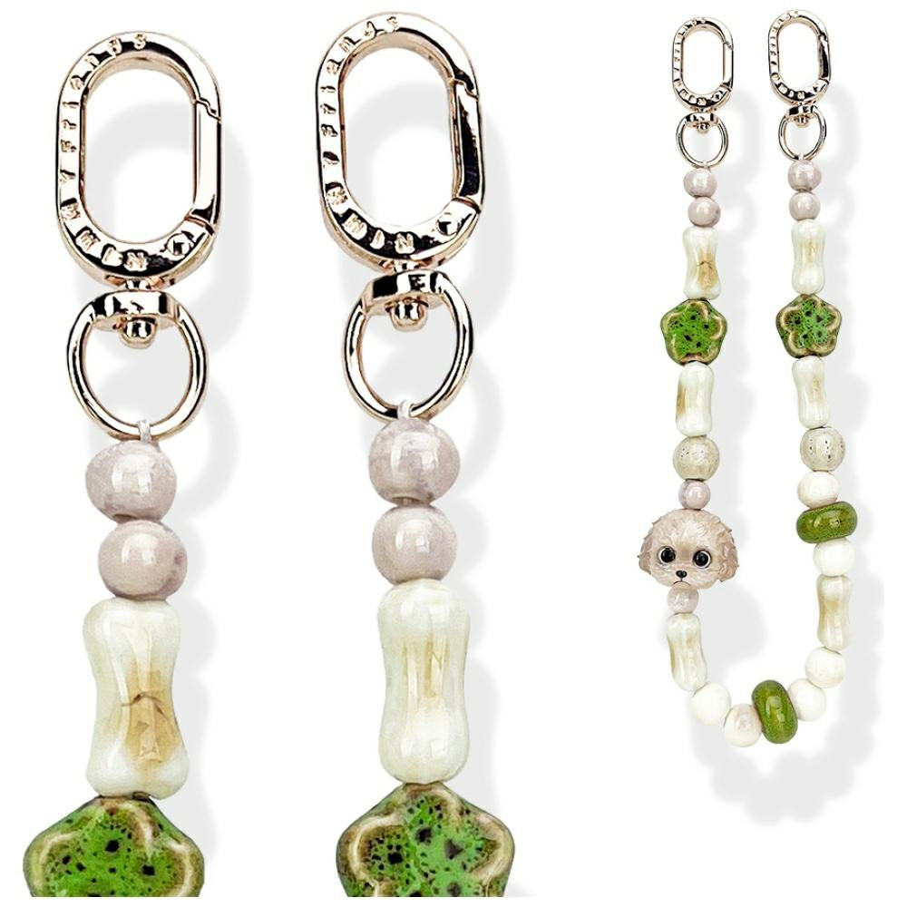 Produkt został wykonany z najwyższą precyzją i dbałością o każdy detal. Połączenie ceramicznych koralików z wytrzymałymi metalowymi karabińczykami zapewnia zarówno trwałość, jak i elegancki wygląd. Zawieszka o długości 38,5 cm to nie tylko modny dodatek, lecz także praktyczne rozwiązanie — łatwo ją przypniesz do torebki czy plecaka, dodając im wyjątkowego charakteru.