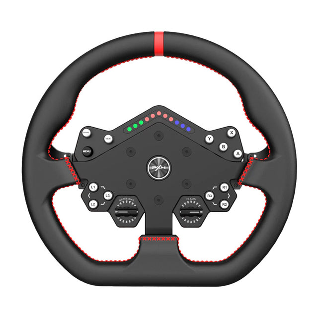 The steering wheel offers 11 customizable RGB LEDs that can act as an engine rev indicator or light effect for greater immersion. A 20-position push-button encoder allows quick adjustment of brake balance, ABS, or traction control. On top of that, there are 13 programmable buttons that, in conjunction with PXN SimRacing software, can be freely assigned - from camera control to pit strategy.