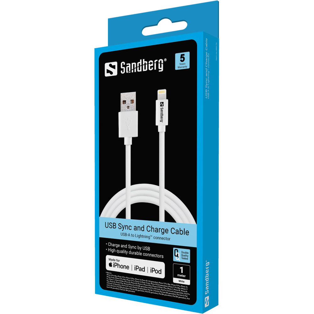 Sandberg USB>Lightning MFI 1m White, 1 m, Lightning, USB A, Hvid, Lige, Lige