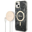 Set Guess GUBPP14SHMEACSK Case+ Charger iPhone 14 6.1" black/black hard case Marble MagSafe
