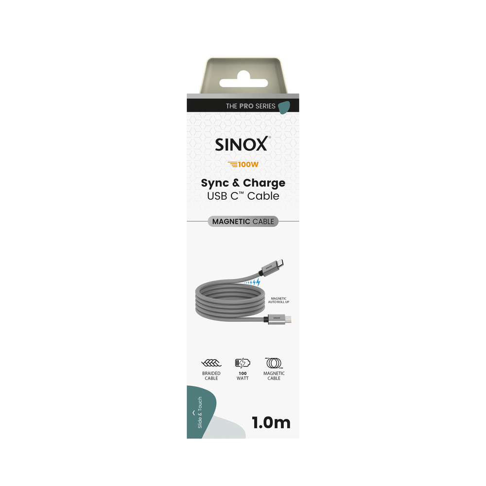 Smart og praktisk Sinox PRO USB C-kabel med magnetisk oprulningsfunktion - perfekt til opladning og dataoverførsel. Sig farvel til kabelrod, og tag det nemt med på farten. Kompatibel med alle USB C-enheder.