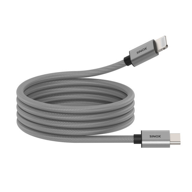 Sinox PRO USB C til Lightning magnetisk kabel. 1m. Grå