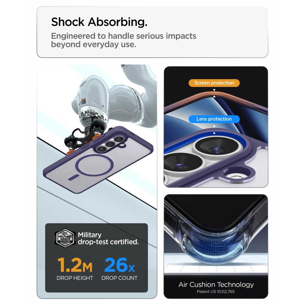 Das Spigen Ultra Hybrid Magsafe ist eine Hülle, die optimalen Schutz und ansprechendes Design vereint und Ihrem Smartphone sowohl Sicherheit als auch einen einzigartigen Look verleiht. Dank der besonderen Hybridkonstruktion (TPU + PC), die einen robusten Rahmen mit einer transparenten Seite kombiniert, behält Ihr Smartphone sein Originaldesign und ist gleichzeitig effektiv vor Beschädigungen geschützt. Verstärkte Ecken mit Luftpolstern absorbieren Stöße und bieten zusätzlichen Schutz bei Stürzen.
