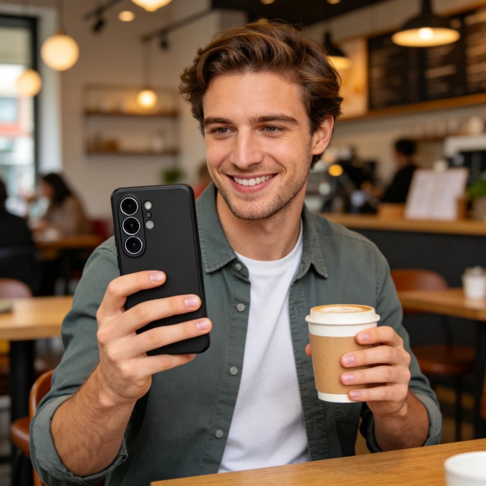 Ein weiterer Vorteil der Hülle ist die leicht erhöhte Form um Kamera und Display, die die empfindlichsten Bereiche des Smartphones vor Kratzern schützt. Das Smartphone liegt leicht erhöht auf einer flachen Oberfläche, wodurch das Risiko von Kratzern beim Ablegen minimiert wird. Dank des minimalistischen Designs der Hülle bleibt die Ästhetik des Geräts voll erhalten, ohne durch zusätzliche Details beeinträchtigt zu werden.