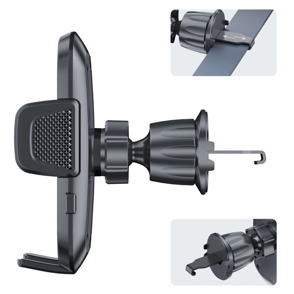 The holder is distinguished by its convenient one-handed operation thanks to the spring mechanism, and the telescopic arm together with the 360° rotating head ensure optimal positioning of the phone. Installation and removal are intuitive - just clean the surface, press the suction cup and tighten the lever. When mounting in the air vent, use the included hook adapter. To maintain the adhesion of the suction cup, it is recommended to wash it before reinstalling.