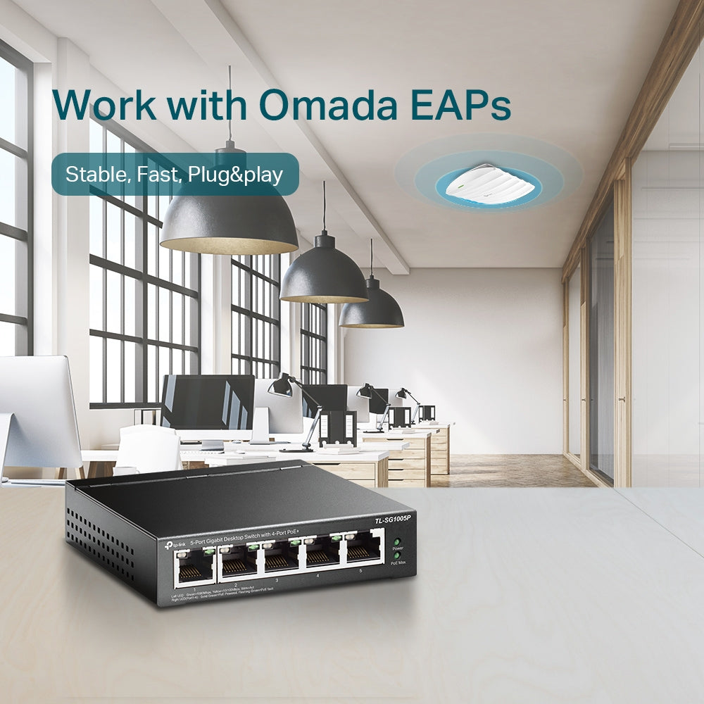 TP-Link TL-SG1005P, Ikke administreret, Gigabit Ethernet (10/100/1000), Strøm over Ethernet (PoE)