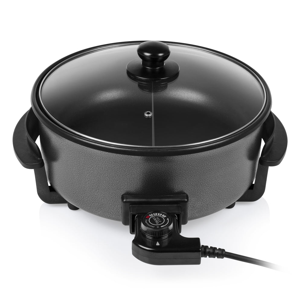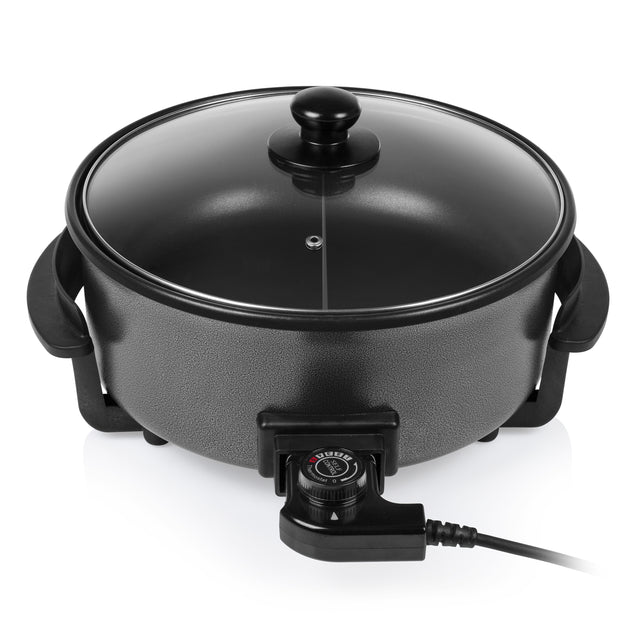 Tristar PZ-9135. Form: Rund, Produktfarve: Sort, Husmateriale: Stål. Strøm: 1500 W, Strømstiktype: Type F (CEE 7/4). Diameter: 30 cm, Højde: 90 mm, Vægt: 2 kg. Pakkebredde: 435 mm, Pakkedybde: 160 mm, Pakkehøjde: 440 mm. Indeholder ikke: Bisphenol A (BPA)