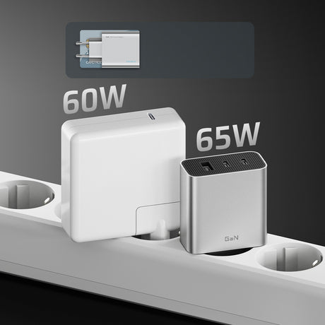 Cuktech 65W GaN 2xUSB-C 1xUSB-A Wall Charger - Grå