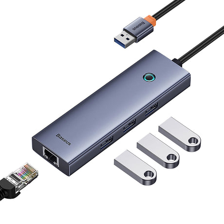 Baseus UltraJoy 4in1 USB-A Hub 3 x USB-A 3.0 + RJ45 - Grå