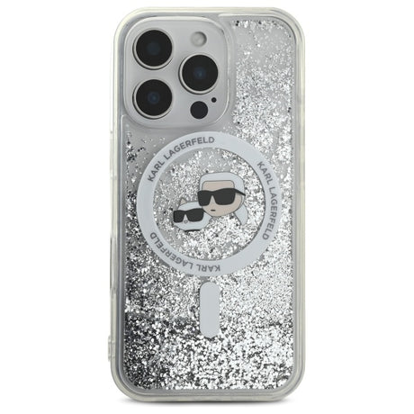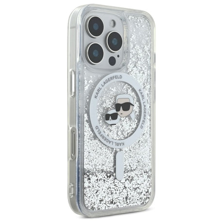 Karl Lagerfeld Liquid Glitter Karl & Choupette Head Magsafe Case for iPhone 16 Pro Max - Clear