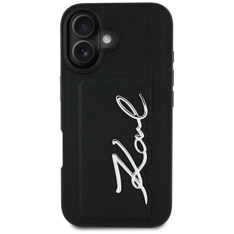 Karl Lagerfeld HC Grained PU Cardslot Metal Signature iPhone 16 Case - sort