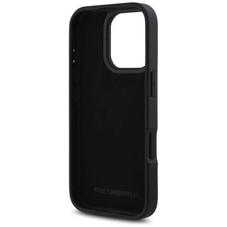 Karl Lagerfeld HC Grained PU Cardslot Metal Signature iPhone 16 Pro Max Case - sort