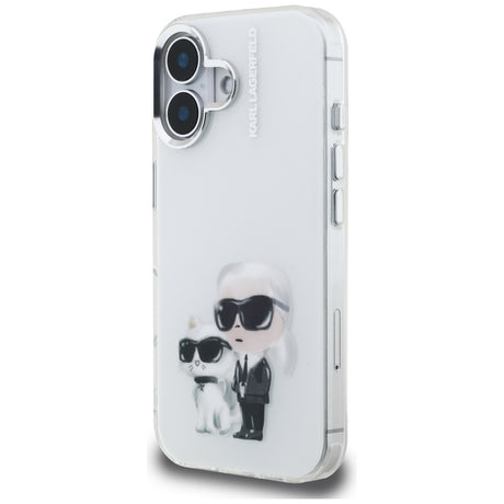 Karl Lagerfeld IML Aquarelle Karl & Choupette & Logo iPhone 16 Case - Hvid