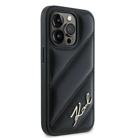 Karl Lagerfeld Diagonal Quilted Script Case til iPhone 15 Pro Max - sort