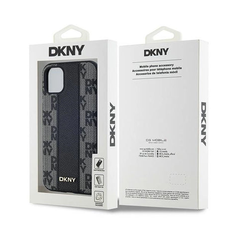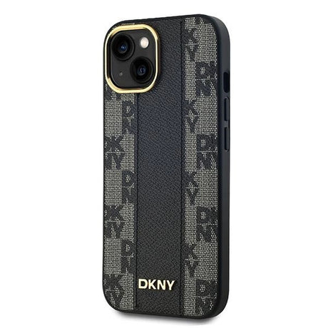 DKNY læder krydsede Mono mønster MagSafe Case til iPhone 15 Plus / 14 Plus - sort