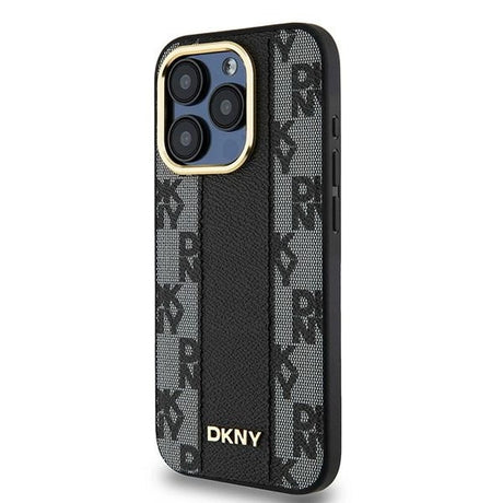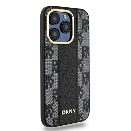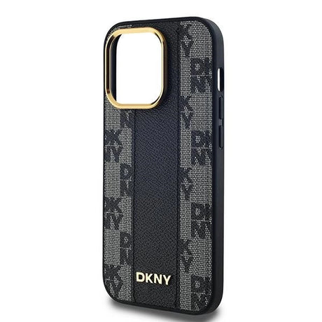 MagSafe iPhone 15 Pro Max-kasse af DKNY læder med krydsede mono mønstre - sort