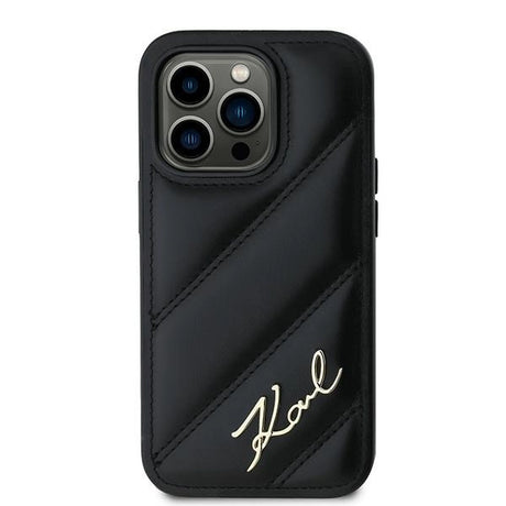 Karl Lagerfeld Diagonal Quilted Script Case til iPhone 14 Pro - sort