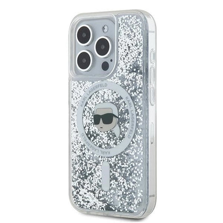 Karl Lagerfeld Liquid Glitter Karl Head MagSafe case for iPhone 15 Pro - transparent
