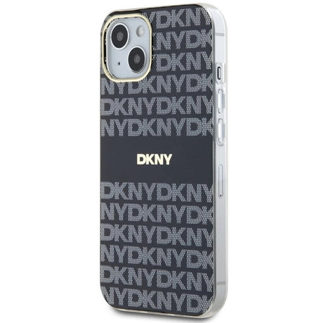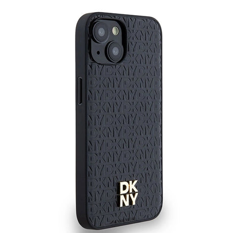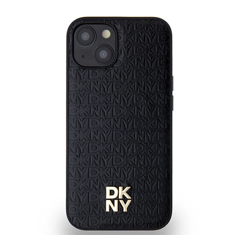 DKNY Leather Monogram Pattern Metal Logo MagSafe Case for iPhone 15/14/13 - Black