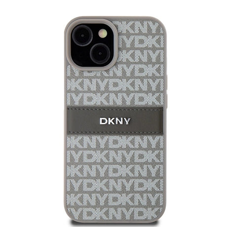 DKNY Leather Mono Stripe & Metal Logo case for iPhone 15 Plus / 14 Plus - beige