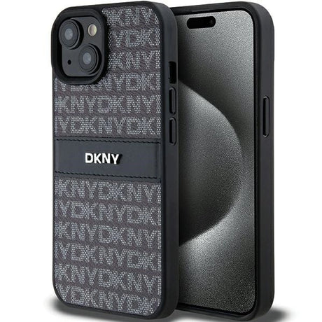 DKNY Leather Mono Stripe & Metal Logo case for iPhone 15 Pro - black