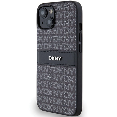 DKNY Leather Mono Stripe & Metal Logo Case for iPhone 15/14/13 - Black
