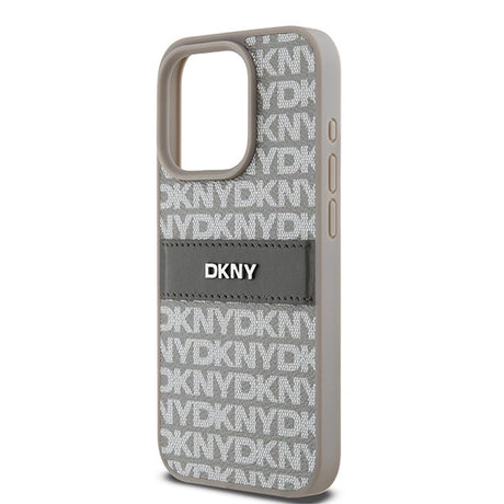 DKNY Leather Mono Stripe & Metal Logo case for iPhone 15 Pro Max - beige
