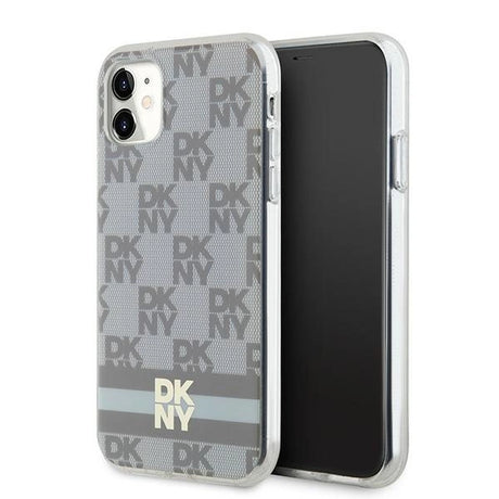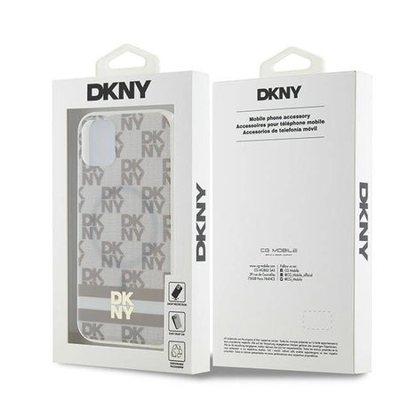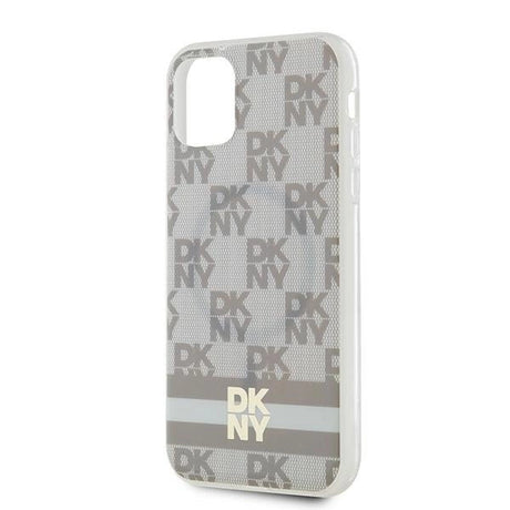DKNY IML Checkered Mono Pattern & Printed Stripes MagSafe case for iPhone 11 / Xr - beige
