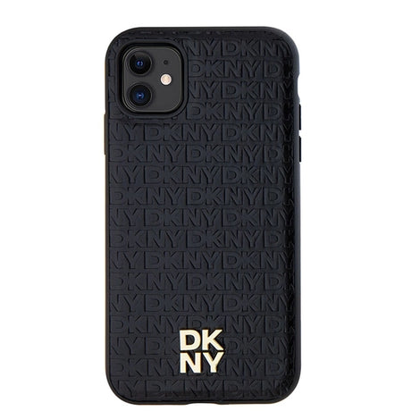 DKNY Leather Monogram Pattern Metal Logo MagSafe Case for iPhone 11 / Xr - Black
