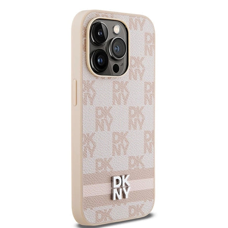 DKNY Leather Checkered Mono Pattern & Printed Stripes case for iPhone 15 Pro - pink