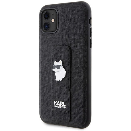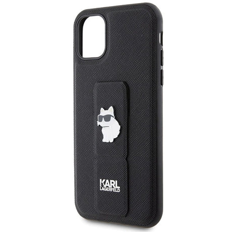 Karl Lagerfeld Gripstand Saffiano Choupette Pins Case for iPhone 11 / Xr - Black