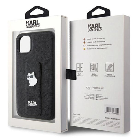 Karl Lagerfeld Gripstand Saffiano Choupette Pins Case for iPhone 13 Pro / 13 - Black