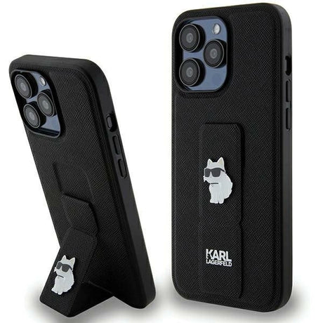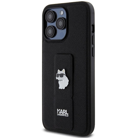 Karl Lagerfeld Gripstand Saffiano Choupette Pins case for iPhone 13 Pro Max - black