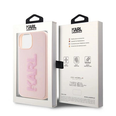 Karl Lagerfeld 3D Rubber Glitter Logo case for iPhone 15 - pink