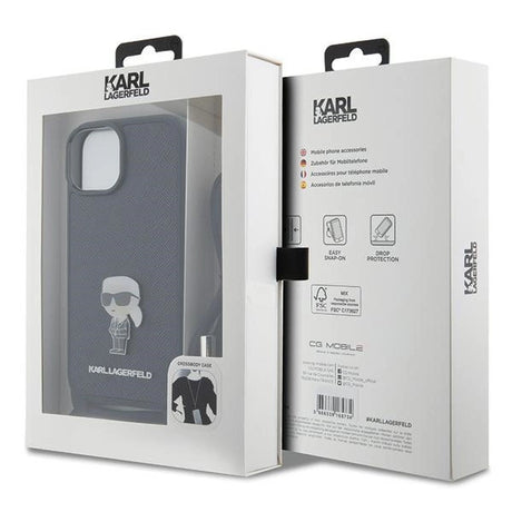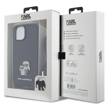 Karl Lagerfeld Crossbody Saffiano Metal Pin Karl & Choupette case for iPhone 15 - black