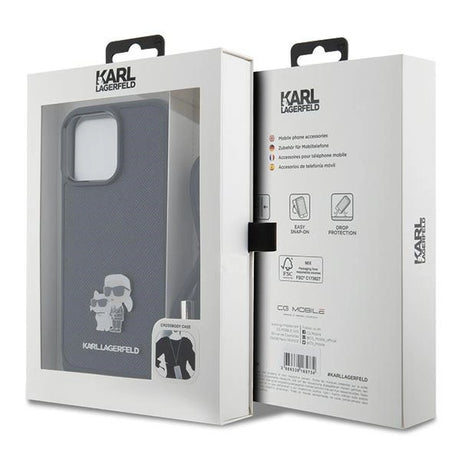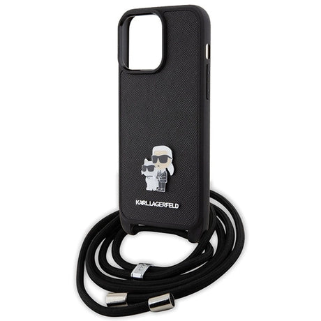 Karl Lagerfeld Crossbody Saffiano Metal Pin Karl & Choupette Case for iPhone 15 Pro Max - Black
