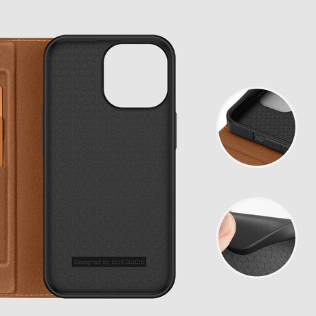 Dux Ducis Skin X2 case for iPhone 14 Pro Max case with magnetic flap brown